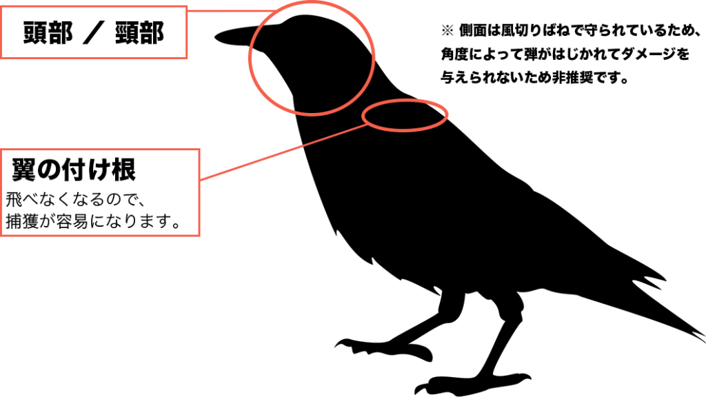 狙う部位は「頭部」「頸部」「翼の付け根」。
